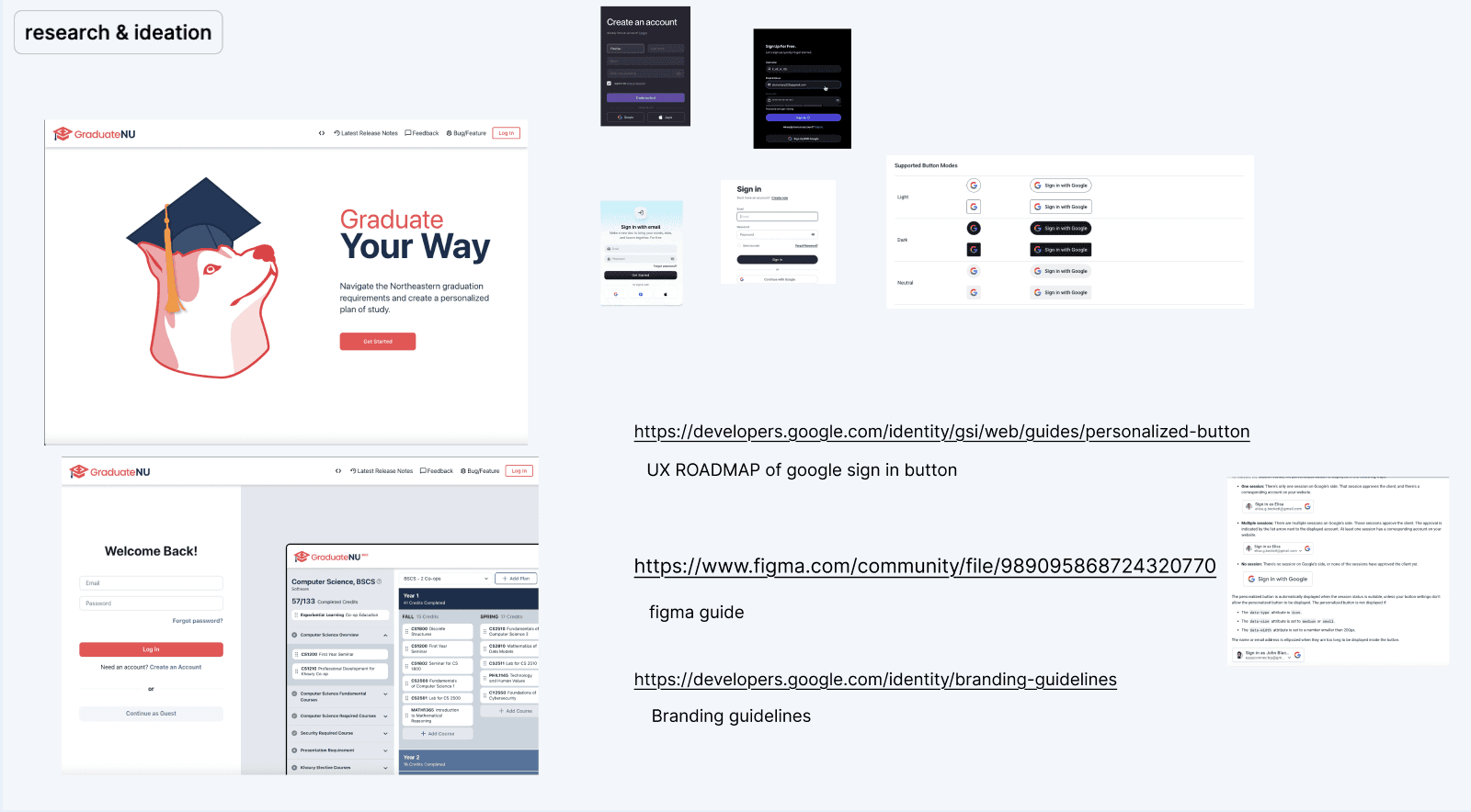 I researched the guidelines through the official google branding documentation online, and pulled inspiration from design sites of past implementations of google sign in options.