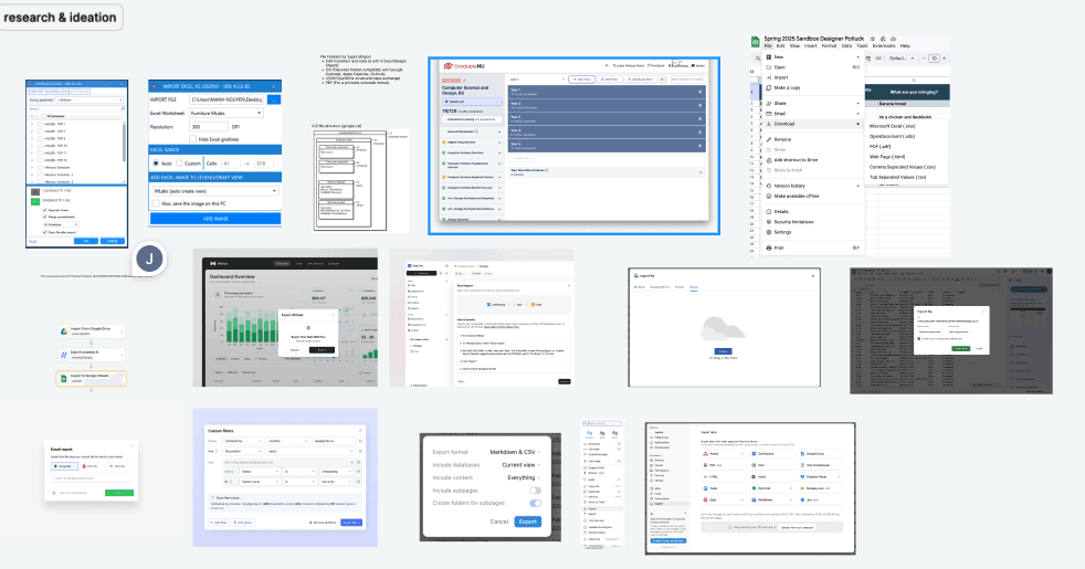 I researched many implementations of export and import user flows, and finally drawing inspiration from designs of Notion and Google Drive. In my opinion, these designs were the most intuitive and comprehensive due to its straightforward user flow.